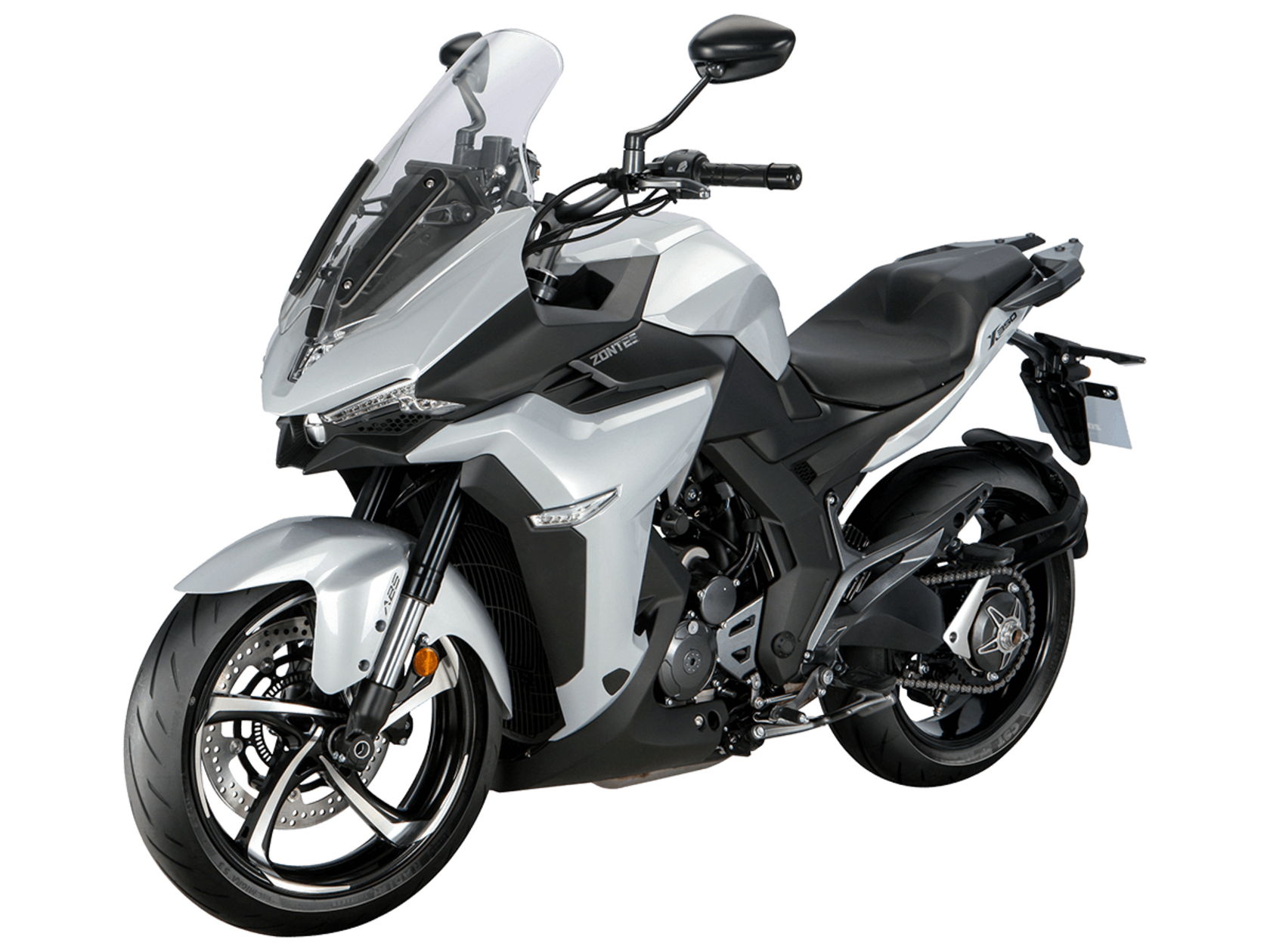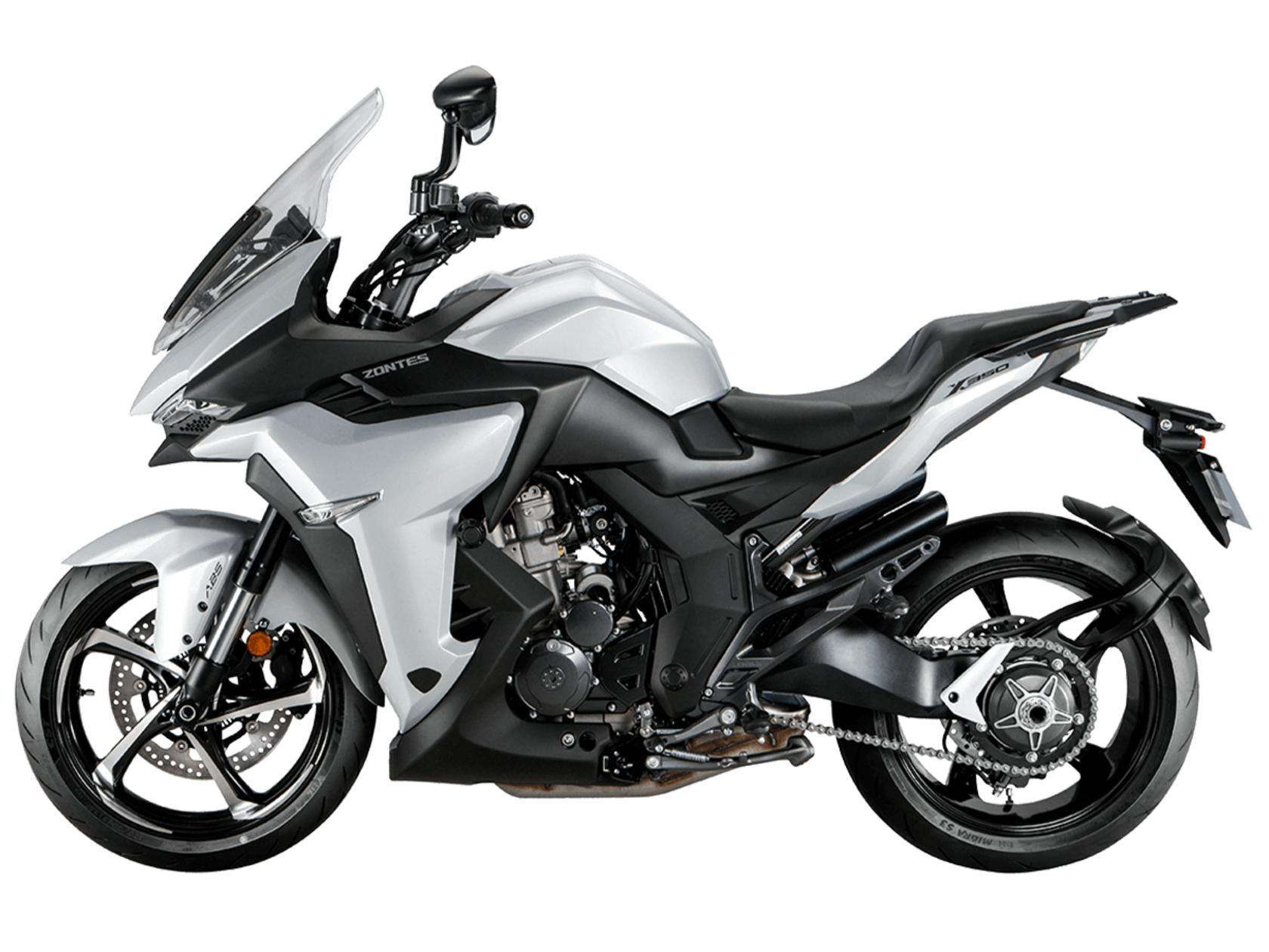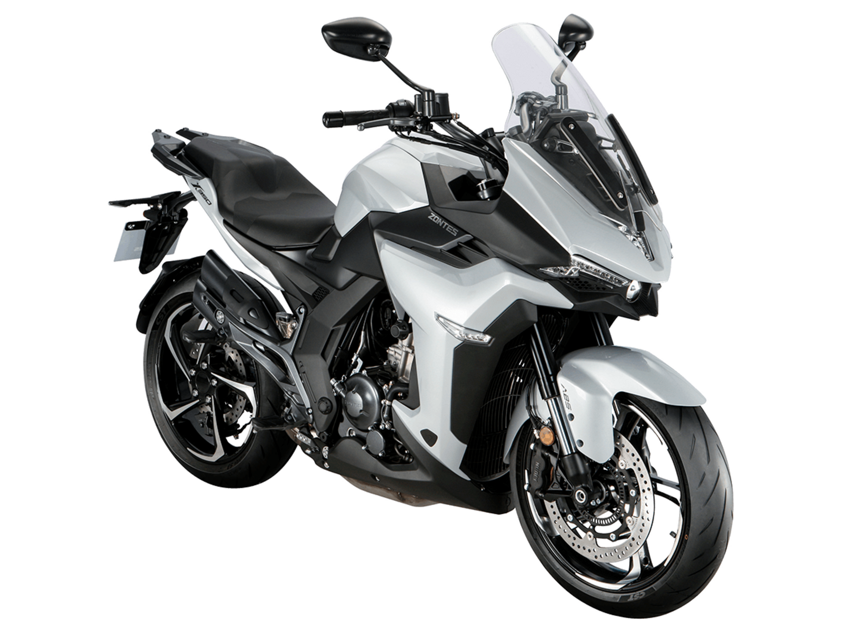 Мотоцикл ZONTES ZT350-X1 – турист со стремительным современным дизайном. Хорошо подходит как для повседневных поездок по городу, так и для покорения дальних маршрутов.Силовая установка представлена одноцилиндровым 4-тактным двигателем ZT184MP с 4 клапанами и 2 верхними распредвалами. Двигатель имеет объём 348 см³ и обеспечивает мощность в 39 л.с. Оснащён инжектором BOSCH и системой жидкостного охлаждения. Механическая коробка передач имеет 6 ступеней и схему 1-N-2-3-4-5-6. Запуск двигателя осуществляется с помощью бесключевого доступа.Ёмкость топливного бака 19 литров.Колёса представлены литыми алюминиевыми дисками диаметром 17 дюймов. На мотоцикл установлены датчики давления в шинах, показатели от которых выводятся на приборную панель. Для подвески спереди используется телескопическая вилка, сзади – моноамортизатор. Гидравлические дисковые тормоза произведены испанской компанией J.JUAN, входящей в холдинг BREMBO.Для освещения используется яркая LED-оптика, а приборная панель представлена цифровым дисплеем. Рычаги тормоза, сцепления и лапки КПП можно отрегулировать. Имеется 2 USB-порта.Габариты мотоцикла 2055х795х1330 мм. Колёсная база 1395 мм. Высота по седлу 795 мм. Вес 169 кг.