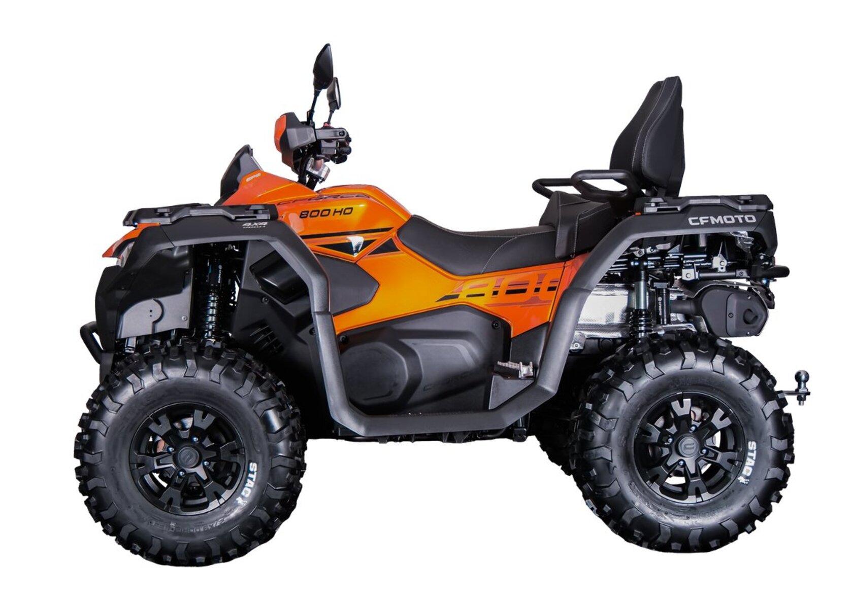 Такого 800-кубового квадроцикла вы еще не видели! CFORCE 800 HO EPS NEW на совершенно новой платформе третьего поколения G3 и в абсолютно новом дизайне с уникальными характеристиками! Усиленная подвеска, высокий клиренс, повышенная мощность, новая конфигурация, комфортная езда и удобство практического применения – и это далеко не все, чем обладает CFORCE 800 HO EPS NEW!Абсолютно новый внешний вид с оригинальной светодиодной оптикой никого не оставит равнодушным!70% компонентов модели CFORCE 800 HO EPS NEW подверглись полной модернизации и оптимизации, сделав ее идеальным выбором для настоящих ценителей путешествий! Удалось снизить сухую массу квадроцикла, но при этом увеличить прочность рамы.CFORCE 800 HO EPS NEW обладает тремя режимами работы двигателя и системой помощи при спуске по склону (DAC), обеспечивая динамичную езду и безопасное использование квадроцикла в работе и на отдыхе. Новая система EPS с возможностью выбора режимов работы позволяет райдеру более точно управлять квадроциклом без потери связи руля и колес.Для удобства, комфорта и лучшей управляемости в путешествиях на различных типах грунтов CFORCE 800 HO EPS NEW укомплектован резиной STAG в размере 27 дюймов.Этот квадроцикл создан идеальным для путешествий в любые уголки России!На CFORCE 800 HO EPS NEW допускается выезд на дороги общего пользования. Дополнительные преимущества:– Абсолютно новая платформа третьего поколения G3