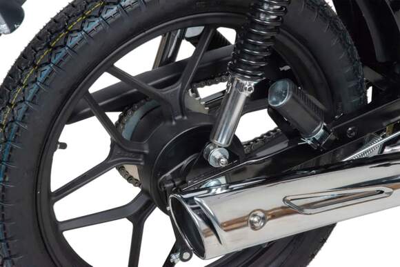 Вес мопеда 80 кг, выдерживает нагрузку до 150 кг.