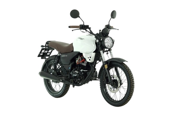 ROCKOT LEGEND 150 - классический дорожный мотоцикл, на создание которого команду специалистов Rockot-Motors вдохновили дорожные ретро-мотоциклы. В итоге, с конвейера завода сходят стильные, аутентичные, классические мотоциклы, которые отличаются от ретро-байков современными органами управления и оборудованием.При создании мотоцикла ROCKOT LEGEND 150, было взято множество образов мотоциклов по типам: классик, скремблер, каферейсер. Для придания модели духа мотоциклетной промышленности 70-х годов прошлого столетия, было решено установить металлические крылья спереди и сзади.Что, как не глушитель и его форма, может охарактеризовать стиль мотоцикла? Поэтому модель LEGEND 150 обрела фирменный глушитель, чья форма в простонародье называется “огурец”.Фара головного света имеет классическую круглую форму, а также специальную металлическую решетку “паутинку”, которая была так популярна раньше на мотоциклах класса типа скремблер.Сзади установлен округлый прямоугольный фонарь, выполненный в общей стилистике мотоцикла. Также, антуражность концепции мотоцикла достигается благодаря применению маленьких указателей поворотов круглой формы.Пожалуй, самое необычное решение, которое позволило показать, что это настоящий “железный” мотоцикл - обточенные, шлифованные ребра охлаждения на головке цилиндра. Современная LED приборная панель выполнена в круглом корпусе, что издали не отличает ее от привычного, классического спидометра.Мотоцикл ROCKOT LEGEND 150 выпускается в двух цветах: с белым глянцевым и черным матовым топливными баками. Но это не все их отличия. Модель белого цвета в своей комплектации имеет коричневое сиденье из эко кожи и коричневые ручки руля. Во второй расцветке мотоцикл выполнен полностью в черном цвете.LEGEND 150 оснащен ста пятидесяти кубовым четырехтактным двигателем CG150 производства Zongshen, который развивает мощность 11 лошадиных сил. Данная модель двигателя отлично зарекомендовала себя благодаря высокому уровню надежности, легкости в обслуживании и высоким показателям мощности и крутящего момента. Все это обусловлено конструкцией системы ГРМ с нижним распредвалом.Коробка передач - пятиступенчатая с многодисковым сцеплением мокрого типа. За образование топливной смеси отвечает карбюратор PZ27, который позволит добиться от двигателя максимальных мощностных характеристик и при этом останется экономичным. Как принято на мотоциклах типа “скремблер”, дорожный мотоцикл ROCKOT LEGEND 150 оснащается длинноходной подвеской. Спереди установлены классические амортизаторы длиной 700 мм и толщиной 31 мм. Сзади мотоцикл оборудован двумя пружинно-гидравлическими амортизаторами. Хоть мотоцикл и не развивает высокую максимальную скорость (до 110 км/ч), он оборудован дисковым гидравлическим тормозом спереди. И барабанным механическим тормозом сзади. Передний двухпоршневой тормозной суппорт работает в паре с 240 мм тормозным диском. Спереди и сзади установлены 18-ти дюймовые диски с универсальными покрышками размерностью 2.75-18 и 3.00-18. Прочные стальные спицевые диски окрашены в черный матовый цвет.