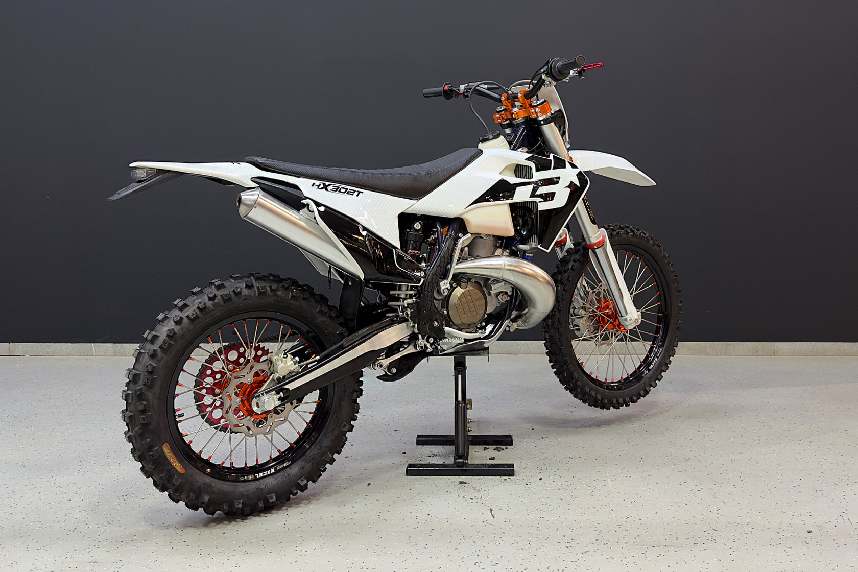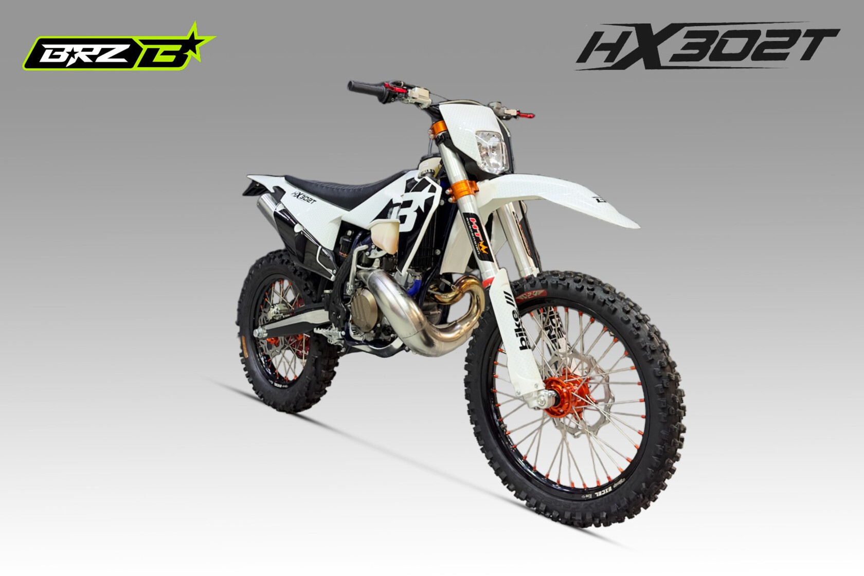 Полноразмерный мотоцикл BRZ HX302t, колесная база 1470 мм. Двухтактный мотор жидкостного охлаждения, рабочим объемом 320 куб.см. КПП на 6 передач.Характеристики:Кубатура – 320cc