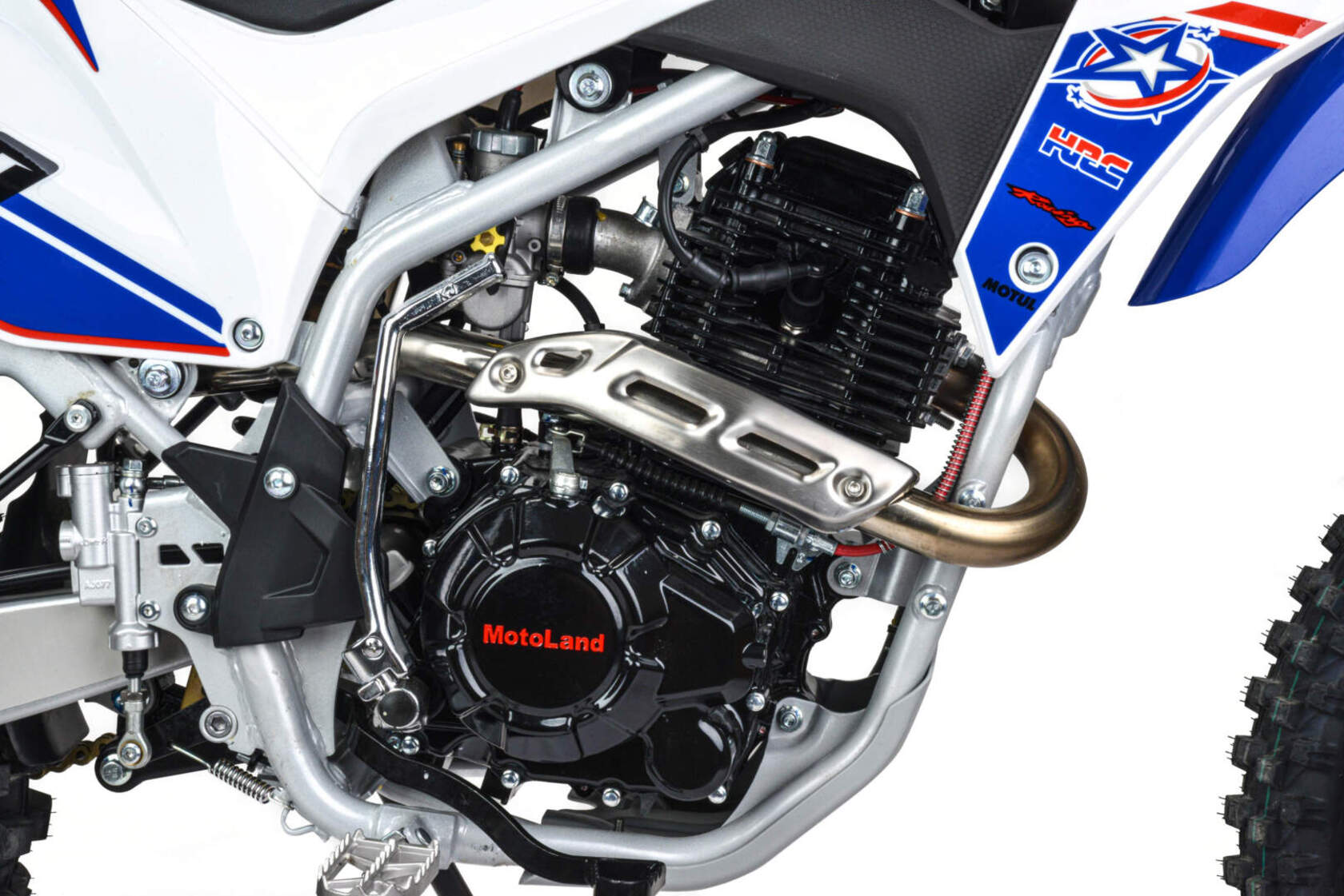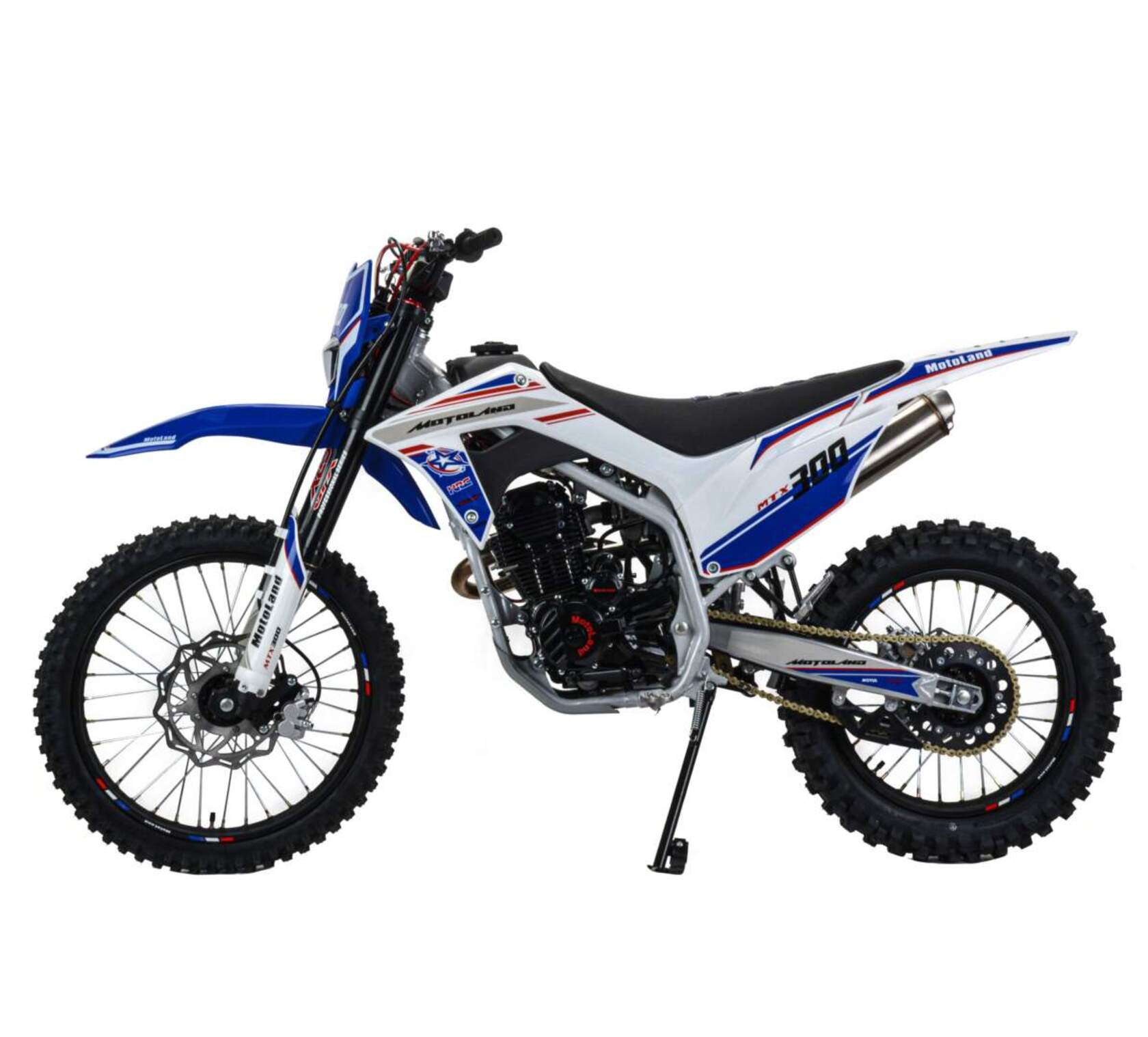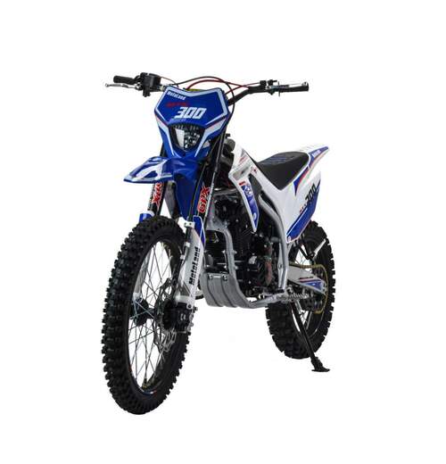 Мотоцикл Motoland 300 MTX300 (175FMM)Идеален для езды по бездорожью, т. к. имеет отличную проходимость на песке и мягком грунте.Обновленный двигатель 175FMM, мощностью 25 л. с. Позволяет выжать из мотоцикла максимум, обеспечивая хорошую динамику разгона и высокую максимальную скорость.Коробка передач механическая, пятиступенчатая. Карбюратор NAKAI оснащен резиновым патрубком, что обеспечивает снижение вибрации.Передняя подвеска (вилка GPX) телескопическая не регулируемая перевёрнутого типа.Задняя подвеска с прогрессией, с моноамортизатором, который имеет регулировку - преднатяг пружины.Рама мотоцикла полудуплексная, стальная.Сиденье кроссовое, с противоскользящим покрытием.Обода колес стальные спицованные, с алюминиевыми окрашенными литыми ступицами.Покрышки 80/100 21” и 110/100 18” с мощными грунтозацепами, обеспечивающими превосходное сцепление с грунтом и позволяющими контролировать управляемость на нестабильных поверхностях кроссовых трасс.Передние и задние тормоза дисковые, с надёжными двухпоршневыми и однопоршневыми суппортами спереди и сзади.Подножки пассажира.Руль переменного сечения с алюминиевыми литыми траверсами, выдерживает значительные нагрузки, в том числе при падениях.Высота по рулю и седлу позволяет чувствовать себя удобно как людям среднего, так и большого роста.Мотоцикл оснащён светодиодной линзованной фарой головного света. Система зажигания электронная (CDI). Запуск двигателя комбинированный, ножным кикстартером и электростартером. Картер с защитным кожухом.