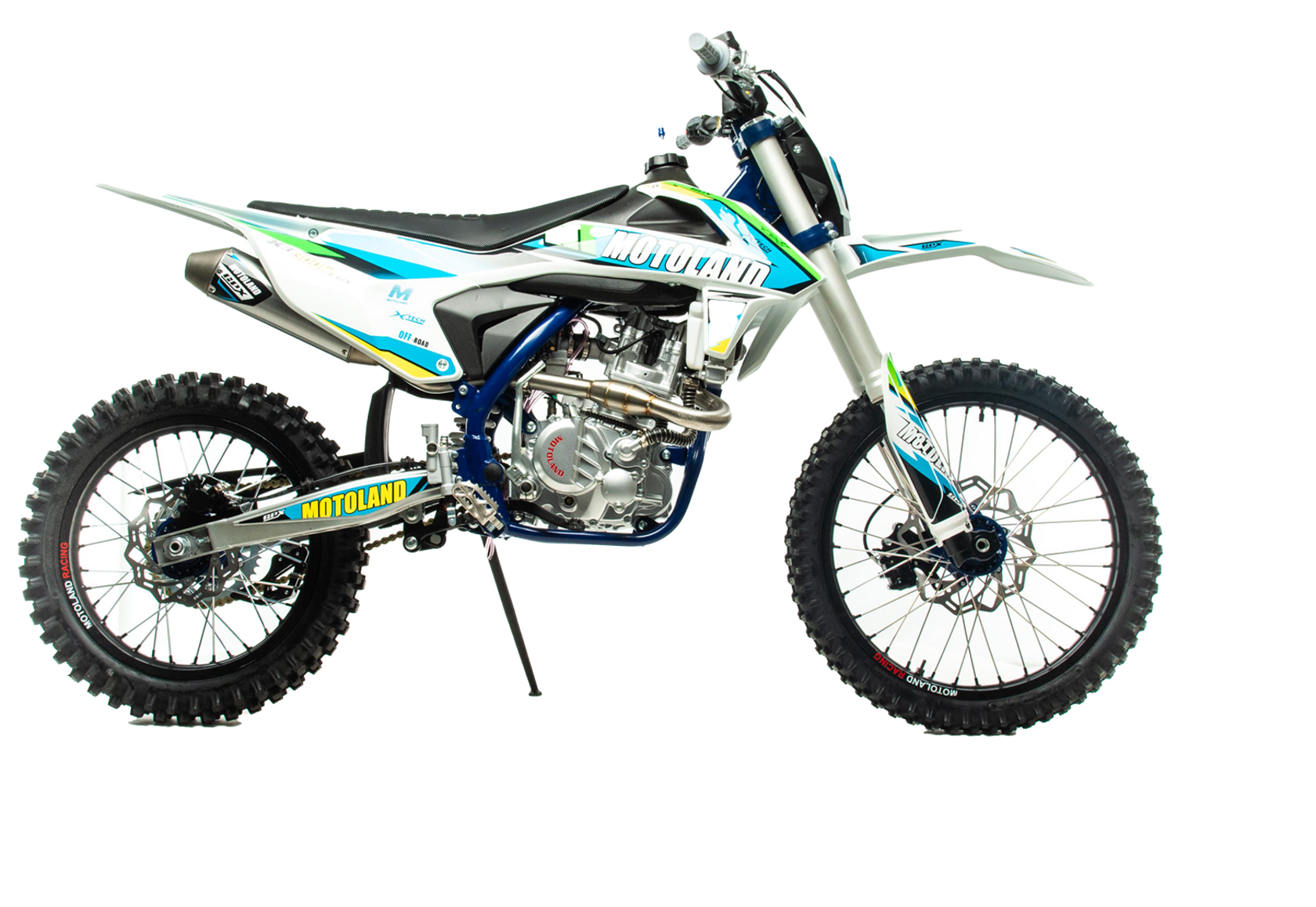 Мотоцикл Кросс Motoland X3 300W PRO (174MN-3) - yовинка сезона 2022 года Двигатель ZONGSHEN 174FMN-3 с водяным охлаждением, дополнительной защитой радиатора, кикстартером и электростартером, мощностью 26 лс.На двигателе установлен Карбюратор NIBBI n34 c ускорительным насосом.Данный мотоцикл оборудован передней подвеской GPX PERFORMRNCE SERSS с фрезерованными траверсами, полной регулировкой на сжатие и на отбой, центральный амортизатор так же регулируемый.Установлена новейшего образца LED оптика.Руль 22/28 переменного сечения “Fatbar” с защитой руля “PRO TAPER” ,противоскользящие грипсы и защитой рук.Колеса 21"/18' на резине с высоким грунтозацепом.Выхлопная система с резонатором из нержавеющей стали "Рowerbomb", который увеличивает мощность на низких оборотах.Для комфортного запуска холодного двигателя предусмотрен выносной флажок обогатителя.Алюминиевая CNC лапка п/п не задевает крышку картера при переключении.Усиленная цепь 520-H с защитой. Что касается тормозной системы , то на данной технике онавысокоэффективная, спереди установлен 2-х поршневой суппорт с защитой тормозного диска, сзади 1-поршневой суппорт