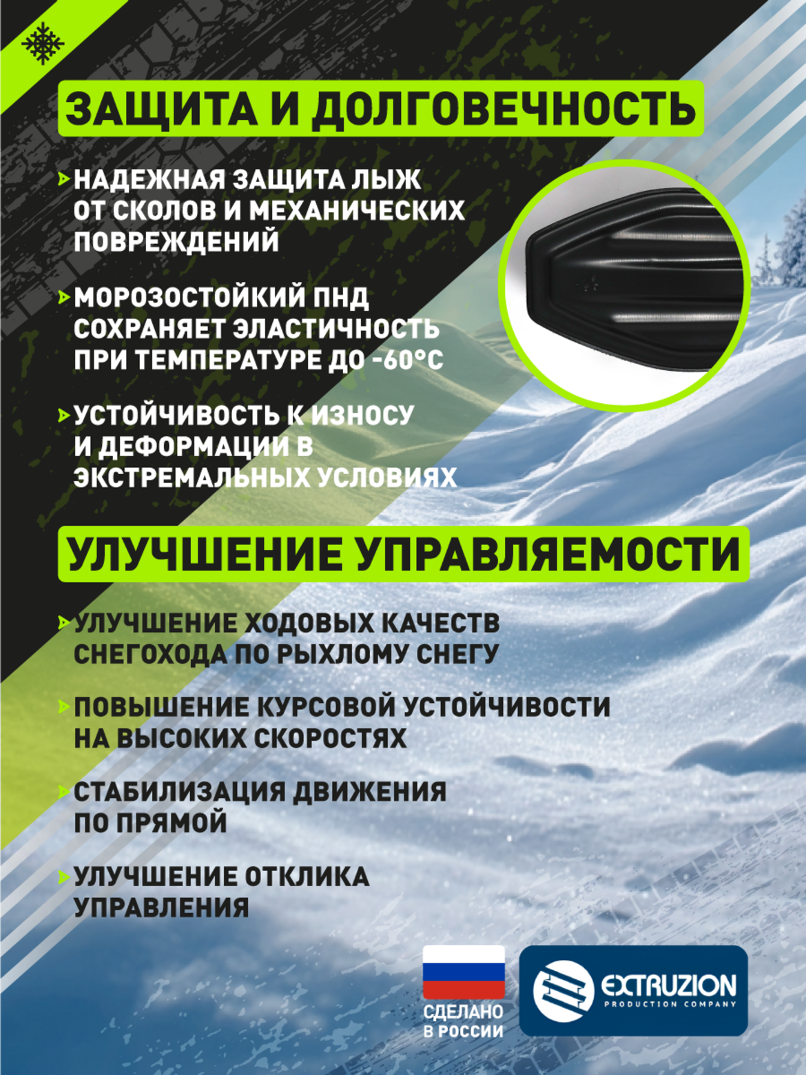 • • Уменьшение износа оригинальных лыж и элементов подвески