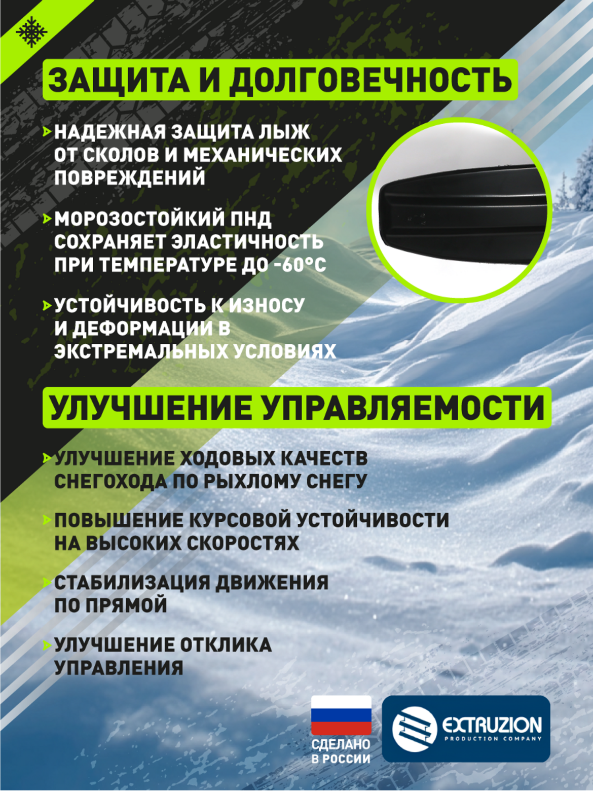 • • Простота установки на стандартные лыжи снегохода