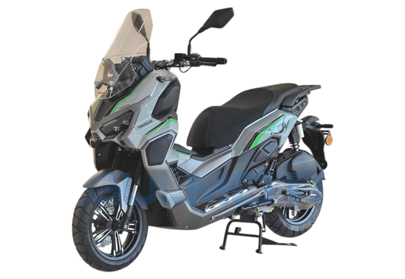 Максискутер Regulmoto XDV TRAVELER - ваш идеальный спутник по дорогам. Этот полноценный двухместный максискутер с двигателем объемом 175сс представляет надежность и высокую проходимость. Ведь его двигатель известен своей неприхотливостью и способностью проехать более 50000 км без каких-либо поломок.Амортизаторы этого максискутера не оставят вас равнодушными. Перевернутые передние амортизаторы с ходом 90мм, специально адаптированные для Российских дорог, гарантируют комфортную поездку. Два задних амортизатора Nitrogen с ходом 65мм дополняют картину максимальной плавности на дороге.Неприступный стиль этого максискутера подчеркивают алюминиевые диски и стильные детали. Дисковые передние и задние тормоза с системой Сombi Break обеспечивают максимальную безопасность и эффективность торможения.Технологически продвинутый большой TFT дисплей Regulmoto XDV TRAVELER обеспечивает отличную видимость даже в самые яркие дни и ночи. Под сиденьем этого максискутера находится просторное место для шлема, так что вы сможете всегда иметь его под рукой. Алюминиевый багажник под кофр позволит вам везти все необходимые вещи с собой.Комфорт - это одна из главных особенностей Regulmoto XDV TRAVELER. Регулируемое в трех положениях высокое лобовое стекло обеспечивает защиту от ветра и осадков, позволяя вам наслаждаться уютной поездкой. Бесключевой доступ, большие зеркала и LED фары делают максискутер еще более удобным и безопасным.Regulmoto XDV TRAVELER - это не просто максискутер, это ваш надежный спутник в путешествиях. С его помощью вы сможете исследовать новые места, наслаждаться скоростью и свободой. LED противотуманные фары, а также LED указатели поворотов и стоп-сигналы обеспечат вас безопасностью и видимостью на дороге.Купите Regulmoto XDV TRAVELER, и вам откроется новое путешествие по дорогам с комфортом, стилем и технологическим совершенством. Сделайте свой выбор и покоряйте дороги с Regulmoto