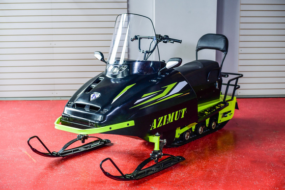 Миниснегоход Бурлак Азимут-2 - вторая версия флагманской новинки «Бурлак Азимут», имеет привлекательный внешний вид, уникальную комплектацию и при этом демократичную цену.По сравнению с первой версией, «Азимут-2» доступен в комплектации с двигателем мощностью 20 л.с., приборная панель дополнена спидометром, а для удобства управления установлены зеркала заднего вида.