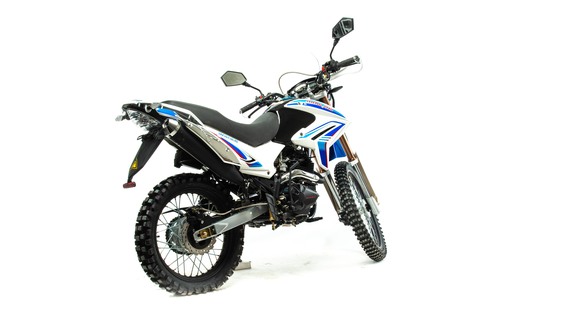 Обновленный мотоцикл Motoland XR250 ENDURO (172FMM-PR) предназначен для езды по бездорожью, эндуро соревнований, подходит для города, шоссейных и сельских дорог.. Motoland XR250 ENDURO (172FMM) отличаются высокой проходимостью, отлично ведут себя на мягком грунте и песке, легко преодолевают препятствия. Спортивный характер XR250 ENDURO (172FMM) подчёркивается современным дизайном. Классическая конструкция акцентирует внимание на сильных сторонах мотоцикла, которому не страшны грязь, брёвна, камни и другие преграды. Мотолэнд XR250 ENDURO (172FMM) весит 130 кг и подходит для пользователей любого роста, хорошо держит баланс и позволяет уверенно сохранять равновесие даже на сложных участках эндуро трасс. Колёса спицованные, сделаны из алюминия. Размер переднего колеса — 21 дюйм (530 мм), заднего — 18 дюймов (450 мм). Передние и задние тормоза дисковые. Покрышки с крупными шипами подходят для бездорожья, лесных дорог, песка и мягкого грунта. При этом купить мотоцикл Эндуро можно не только для соревнований, но и для езды по трассе и городу. Передняя вилка — перевёрнутая телескопического типа, дополнительно защищена жёстким пластиком. Задняя подвеска с моноамортизатором. Руль Эндуро усилен пластиковыми рамками, которые защищают руки гонщика от веток и травм при падениях. Приборная панель оснащена ЖК-экраном, на котором отображается вся информация о состоянии Эндуро: обороты, пробег, скорость и другие необходимые данные. Китайский Эндуро компании MotoLand оснащён одноцилиндровым 4-тактным двигателем 172 FMM с воздушным охлаждением и балансирным валом. Мотор мощностью 21 л. с. и объёмом 250 см³ даёт возможность разгоняться на Эндуро по ровной трассе до 120 км/ч. Расход топлива — 5 литров на 100 км. Коробка передач механическая, 5-скоростная. Для запуска мотора используйте электростартёр или кикстартёр. Установлена электронная система зажигания (CDI). У нас Вы можете купить этот мотоцикл с бесплатной доставкой по РФ и гарантией до года. Также его можно приобрести в рассрочку или в кредит.