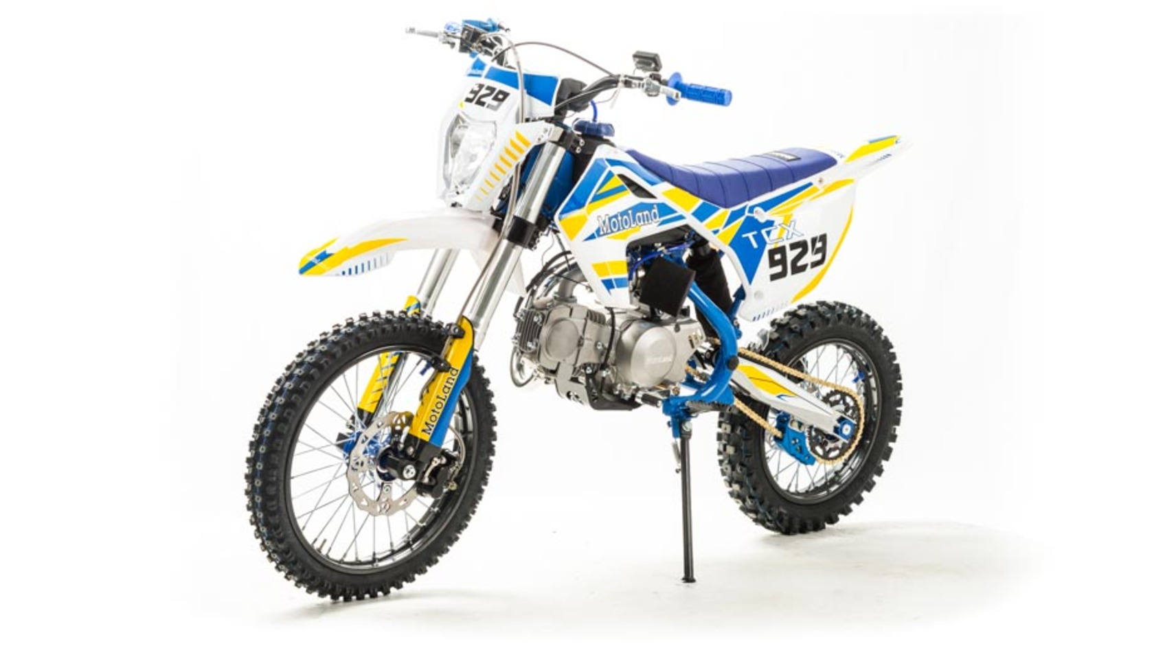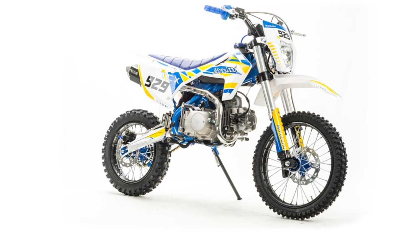 Питбайк Motoland TCX125 идеален для поездок по грунтовым дорогам и бездорожью. Хорошо чувствует себя на мягком и среднем грунте, разгоняется до 90 км/ч. Оснащён спортивными траверсами, весит всего 75 кг.Питбайк прост в управлении и не требует специального ухода, подойдёт как новичкам, так и любителям мотокросса.У питбайка отличный узнаваемый дизайн. Конструкция подчёркивает неуступчивый спортивный характер, который не остановится ни перед одним препятствием.Комбинированный прочный пластик не ломается при сгибании.Передняя подвеска — телескопическая вилка перевёрнутого типа, которая отлично подходит для преодоления ям, и других неровностей плохих дорог или их отсутствия. Задняя подвеска маятниковая с моноамортизатором.Питбайк оснащён карбюратором с фильтром нулевого сопротивления Nibbi PE n19 и одноцилиндровым четырёхтактным двигателем с воздушным охлаждением. Надёжный мотор 153FMI мощностью 8 л. с. и объемом 125 см³ , установленный на усиленной стальной раме, коробка передач механическая, четырёхступенчатая.Тормоза дисковые, передний тормозной суппорт двухпоршневой, задний — однопоршневой.Питбайк относится к недорогим моделям, которые при должной эксплуатации работают без сбоев. Не занимает много места в гараже. При необходимости в нём легко сменить любую повреждённую деталь.